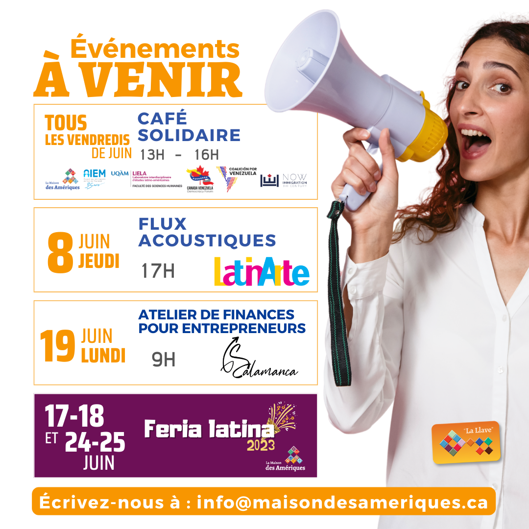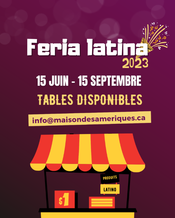 La Maison des Amériques se transforme en Feria, du 15 juin au 15 septembre, nous recréerons l’expérience latino-américaine, chaque fin de semaine de l’été, au cœur de l’Estrie.