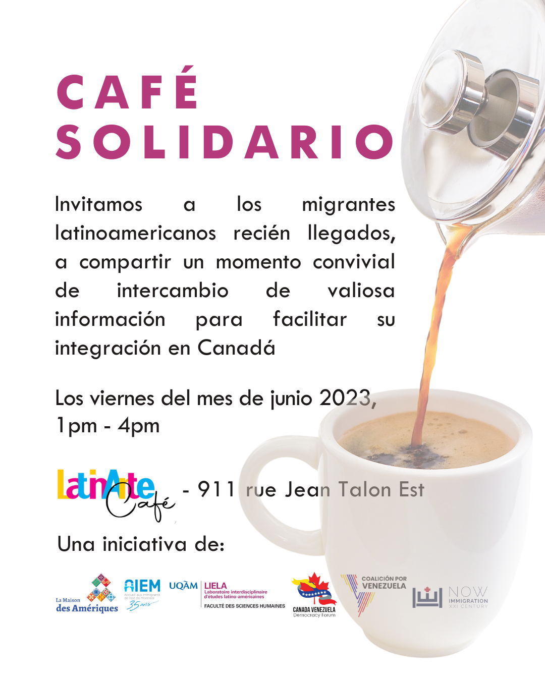 Ce projet est réalisé en collaboration avec Accueil des immigrants de l’Est de Montréal, AIEM, le Laboratoire interdisciplinaire d’études sur l’Amérique latine, LIELA, Le Forum pour la démocratie Canada-Venezuela et la Maison des Amériques.