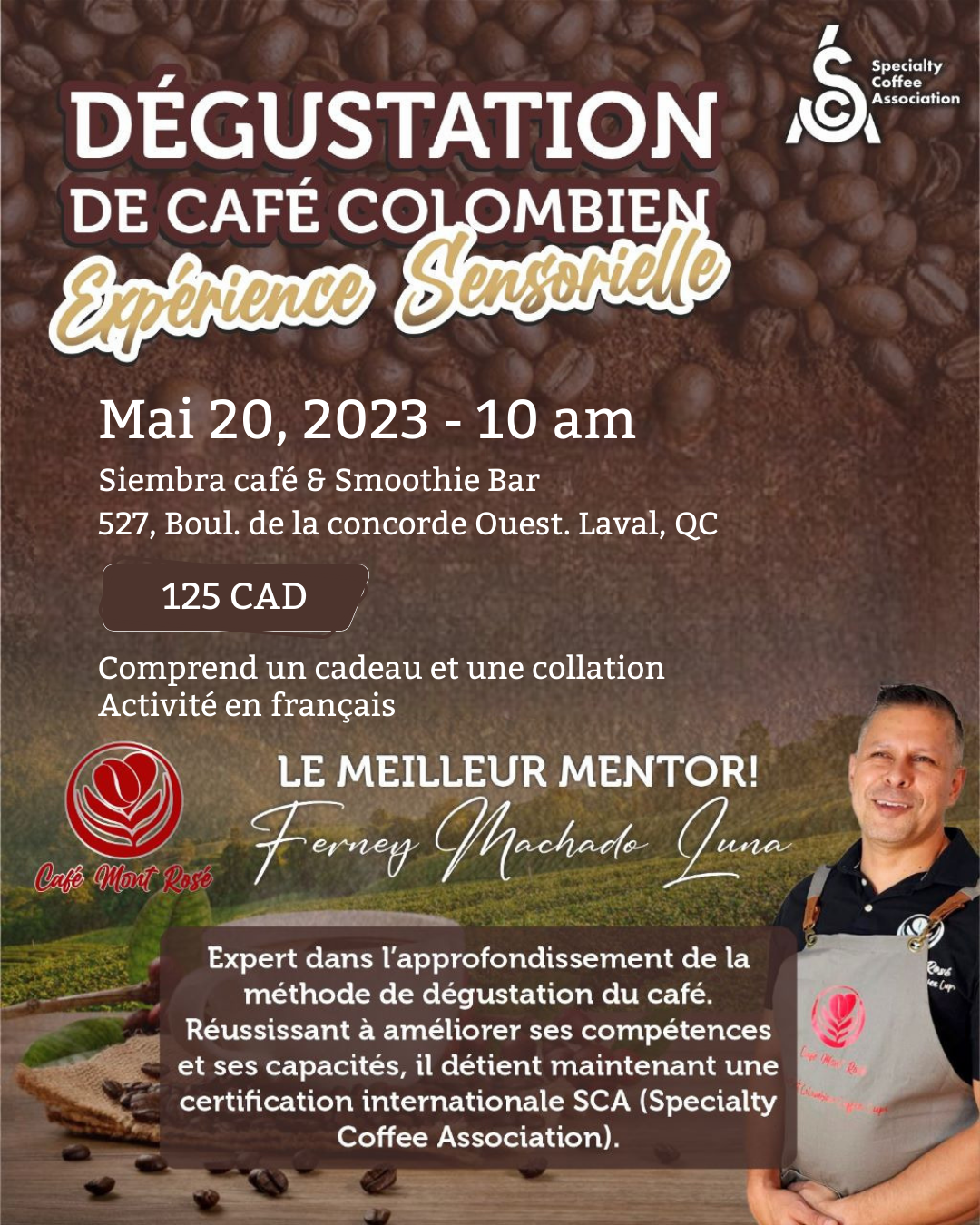 Ferney Machado, expert en dégustation de café, nous invite à vivre une véritable expérience sensorielle qui va au-delà de la simple découverte, en exposant la manière dont l’odorat et le goût sont stimulés et fusionnent avec la saveur du café en bouche. Nos sens et leurs perceptions vont vers la reconnaissance des arômes, l’acide, l’amer et le sucré seront perceptibles au cours de cette expérience, en identifiant les parfums et le corps de chaque variété de café, libérés dans chaque tasse.